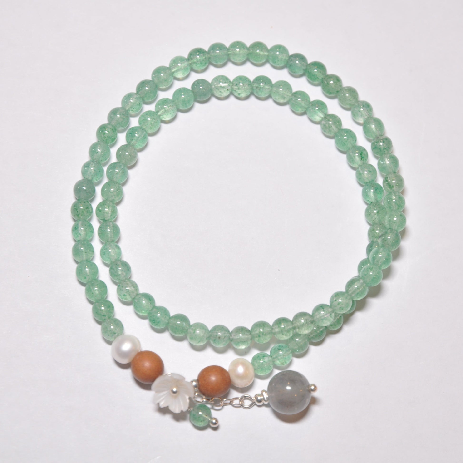 Material Green Strawberry Quartz, Natural Pearl, Shell, Strawberry Quartz