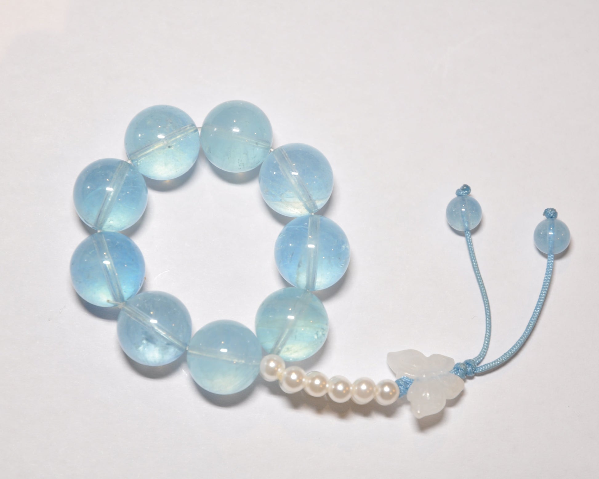 Aquamarine congeals "Southern Abyss Star-Tides", its cerulean luster intercepting Classic of Mountains and Seas' "Sunrise Valley where aquatic deity Tianwu dwells" through quantum-entangled hydro-essence, embodying Water element's supreme clarity. Pearl encapsulates "Mermaid's Lunar Sorrow" ultimate yin spirit, its pearlescent sheen encoding Yingya Shenglan's tidal constant: "dragon-chin pearls illuminate seas, calming waves with lunar gravity". Silver filigree articulates Ursa Major's celestial mechanics, via "Metal generates Water" arcana bridging cosmic realms, synchronizing stellar tidal forces and lunar radiance into wrist-borne cosmic continuum.