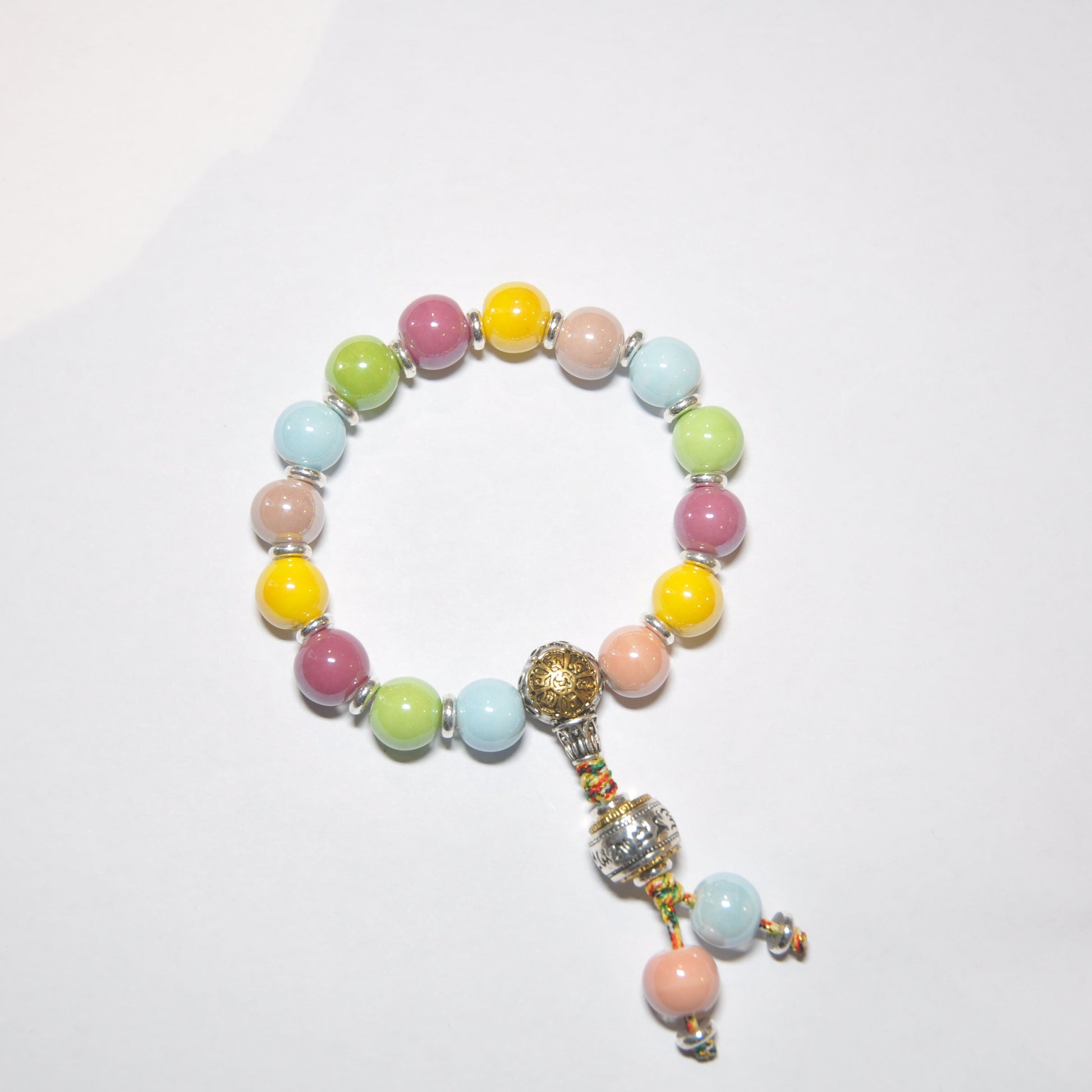 Colored Glass congeals "Sumeru Incense Fire" Fire element, its smoky veils preserving Śūraṅgama Sūtra's "disciplined samadhi-incense fumigating decosmic realms" as quantum-entangled prayer vectors; Glass matrix absorbs "Cosmic Dust Kalpas" Earth virtue, its nebular inclusions encoding Dunhuang Mogao Grottoes' century-accumulated incense ash temporal-spatial memory. Gilded circlet traces Polaris astral tracks bridging cosmic planes, manifesting Book of Changes' arcana "Fire generates Earth, Earth hoards Metal", enabling devotional fumigation's spirituality to resonate with stellar dust within wrist's microcosm.