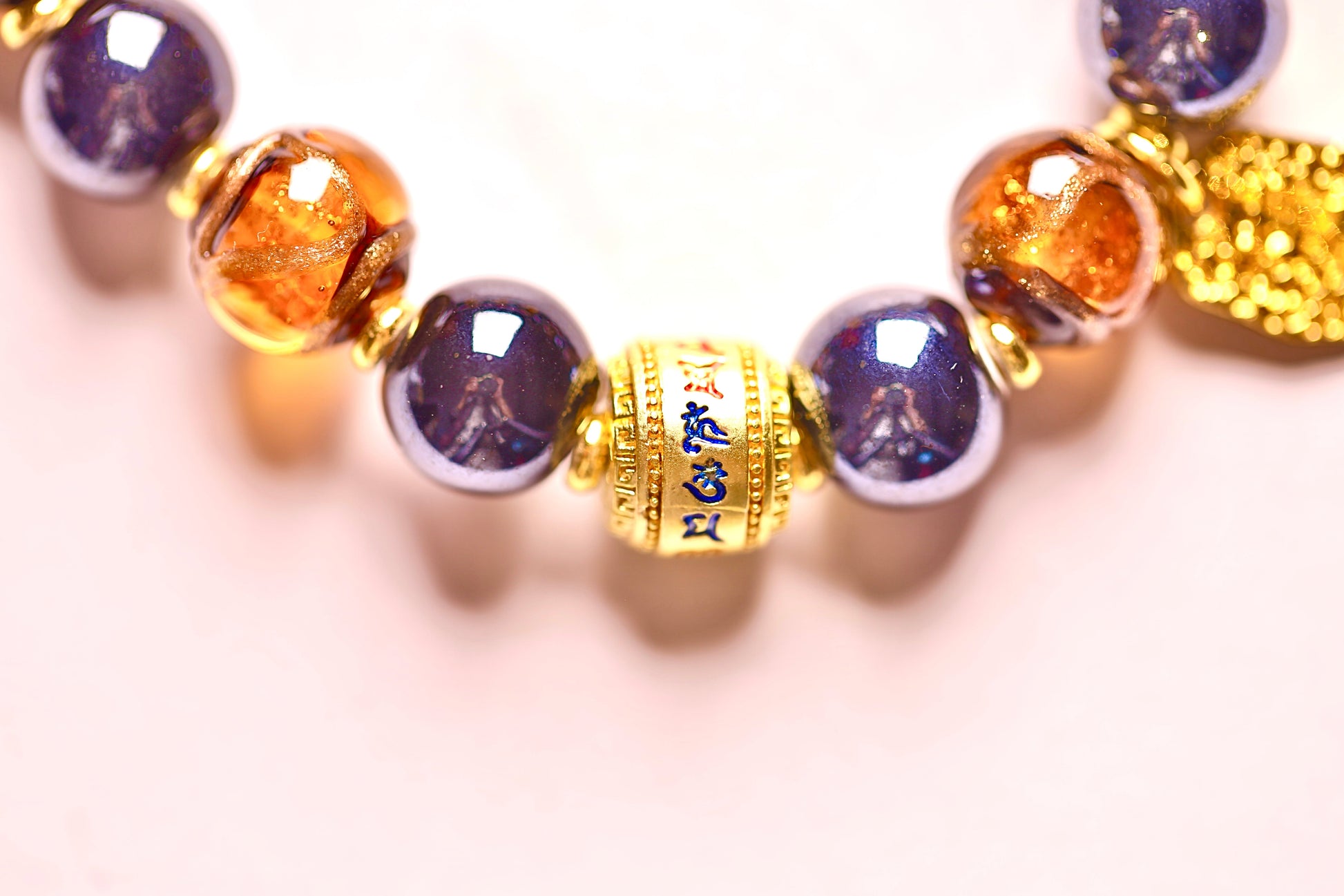 Colored Glass congeals "Sumeru Incense Fire" Fire element, its smoky veils preservingŚūraṅgama Sūtra's "disciplined samadhi-incense fumigating decosmic realms" as quantum-entangled prayer vectors; Glass matrix absorbs "Cosmic Dust Kalpas" Earth virtue, its nebular inclusions encoding Dunhuang Mogao Grottoes' century-accumulated incense ash temporal-spatial memory. Gilded circlet traces Polaris astral tracks bridging cosmic planes, manifesting Book of Changes' arcana "Fire generates Earth, Earth hoards Metal", enabling devotional fumigation's spirituality to resonate with stellar dust within wrist's microcosm.