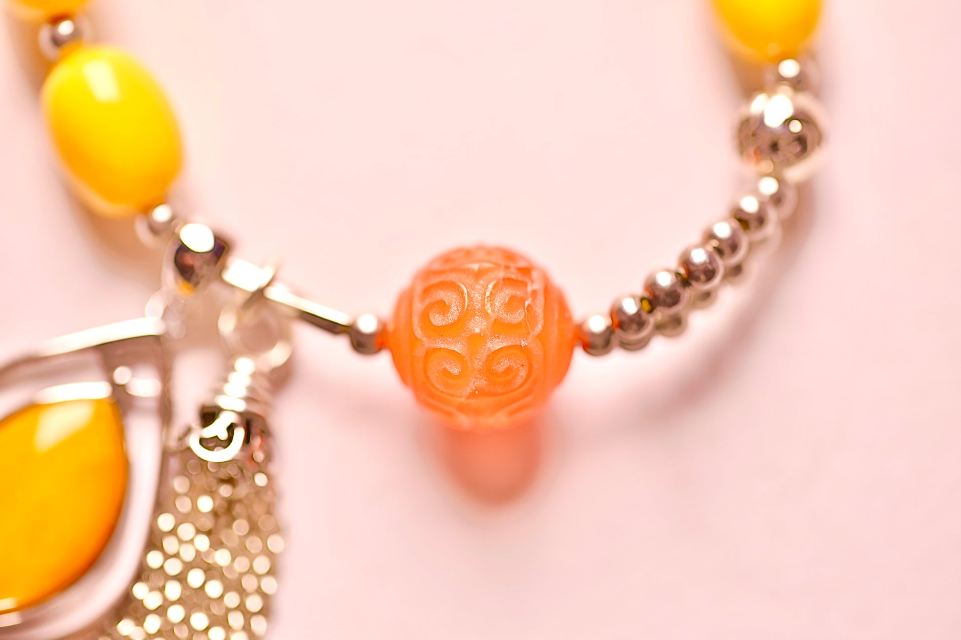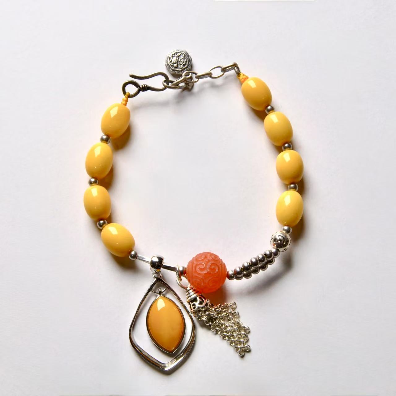 Amber congeals "Eocene Solar Soul", its ochre flow veins intercepting Book of Changes' "yellow centrality connects cosmic principles, rightful position embodies substance" Earth Spirit profundity, manifesting Earth Virtue's nurturing aspect. Each resin filament encodes Artificers' Record's "celestial chronometry, terrestrial energies" spacetime warps, its fossilized flow patterns preserving Yunlin Stone Manual's "amber as millennium-sealed pine resin, channeling telluric currents" through quantum-entangled vortices. Corresponding to sacral chakra's vital cultivation, it actualizes cosmic life cycle: "Earth generates Metal, Metal nourishes Water".